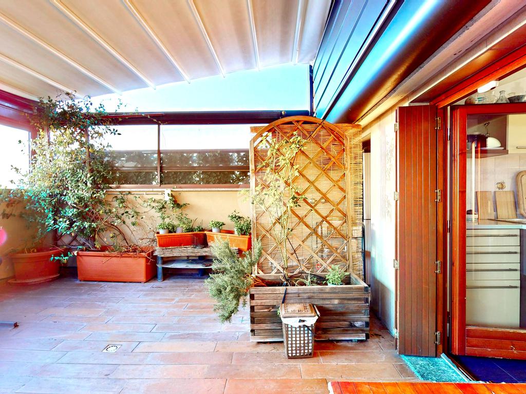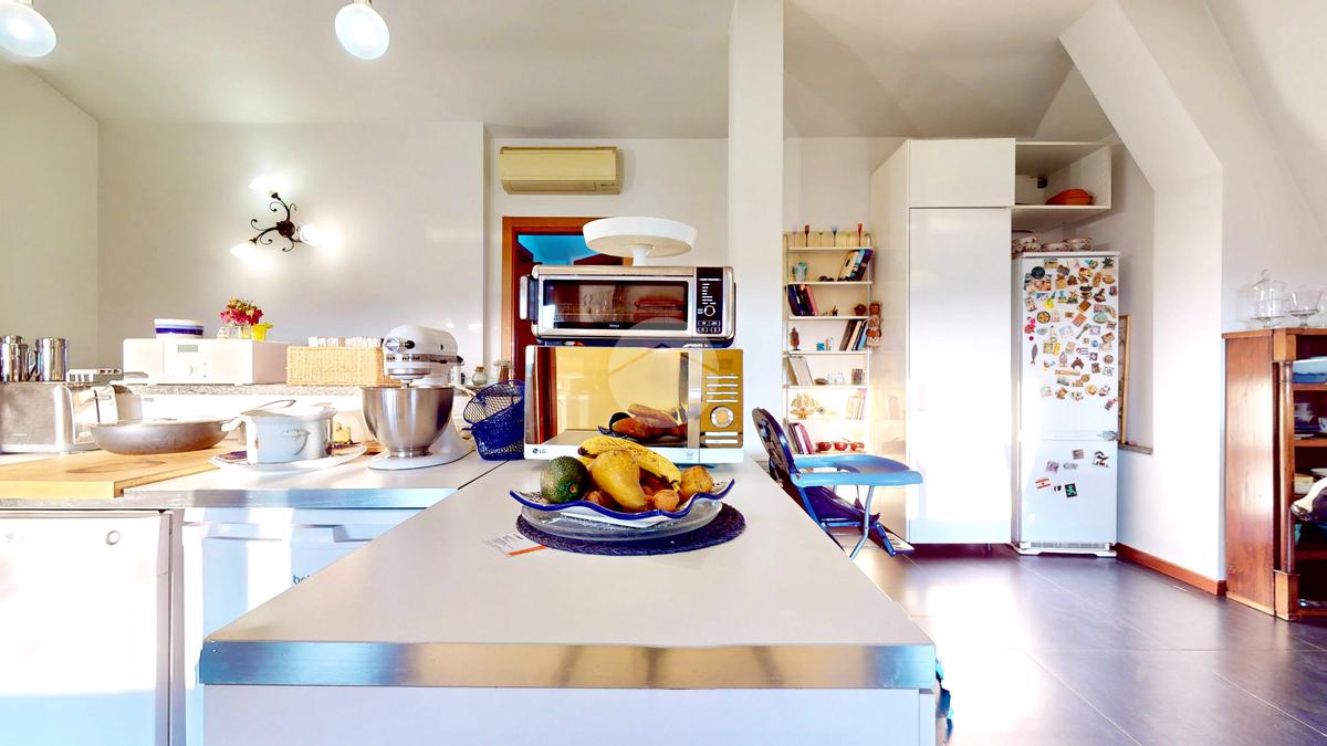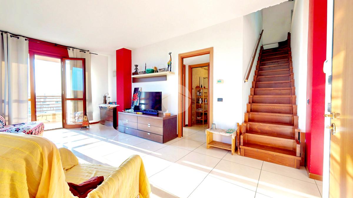 L'appartamento è disposto su due livelli: al piano nono troviamo un ingresso su ampio soggiorno a cui si accede ad un ampia balconata , due camere entrambi con uscita sul balcone , bagno finestrato , disimpegno e scala interna che porta al piano decimo dove troviamo un secondo bagno finestrato , zona cucina living, studio e due terrazzi , uno con esposizione est e l'altro con esposizione ovest , più ampio, accessoriato da ampio tendone rigido anti vento a chiusura ed apertura elettrica.